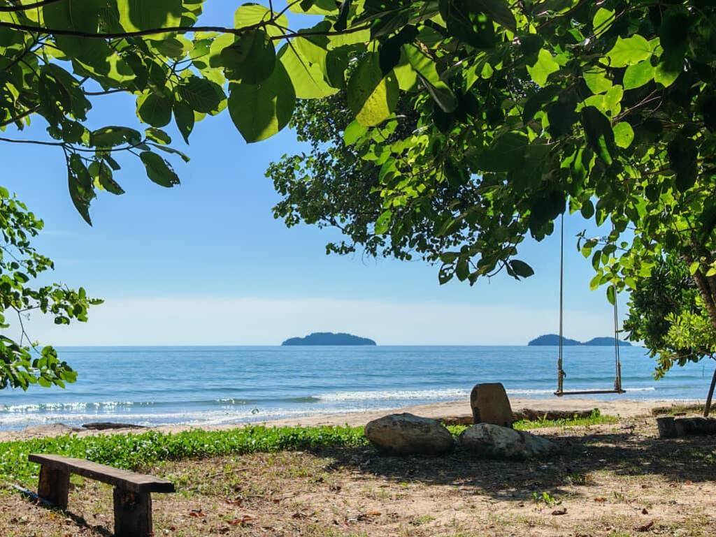 Located under the shade of leafy trees, this quiet beachfront spot offers nothing more than a wooden bench, a handmade swing, and the sound of gentle waves — and that’s exactly what makes it perfect.