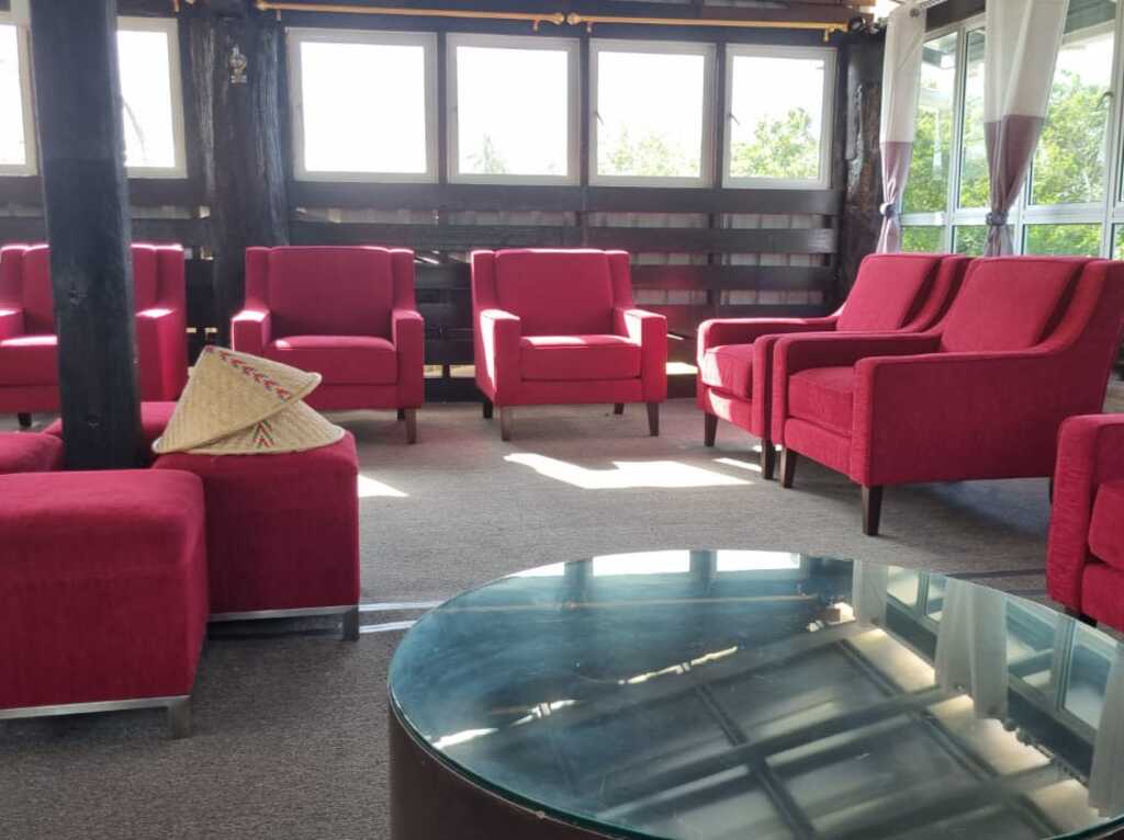 A quiet, enclosed space ideal for group discussions, team meetings, and planning sessions — with natural light, fresh air, and a relaxed resort backdrop.